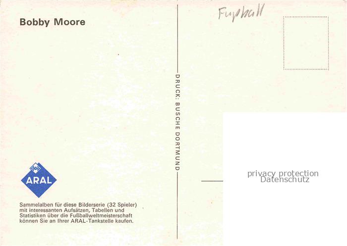 74051925 Fussball Soccer Football– Bobby Moore postalisch nicht gelaufen Erhaltung siehe scans [IrynaD87] KatCode: 22520000002900