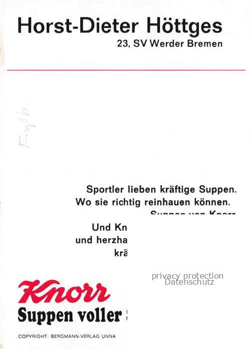 74052050 Fussball Soccer Football– Horst Dieter Hoettges SV Werder Bremen postalisch nicht gelaufen Erhaltung siehe scans [IrynaD87] KatCode: 22520000002900