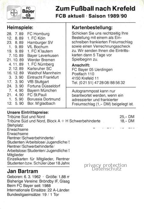 74051838 Fussball Soccer Football– Jan Bartram FC Bayer 05 Uerdingen Autogramm postalisch nicht gelaufen Erhaltung siehe scans [IrynaD87] KatCode: 22520000002900