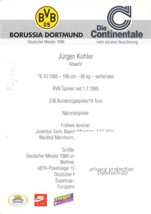 74052085 Fussball Soccer Football– Juergen Kohler Abwehr BVB 09 postalisch nicht gelaufen Erhaltung siehe scans [IrynaD87] KatCode: 22520000002900