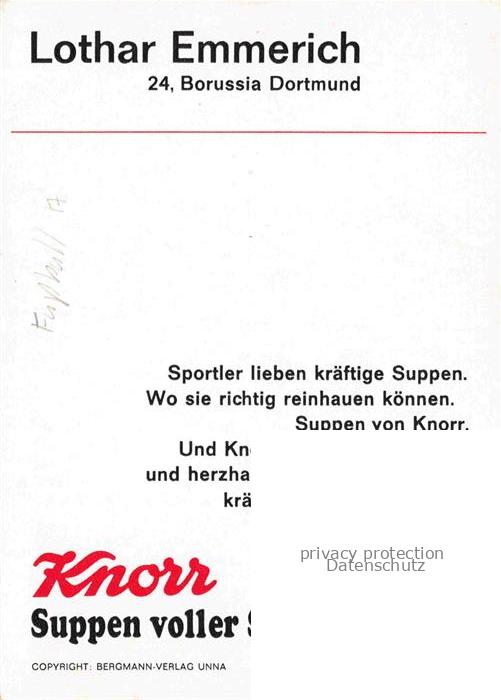 74052077 Fussball Soccer Football– Lothar Emmerich Borussia Dortmund postalisch nicht gelaufen Erhaltung siehe scans [IrynaD87] KatCode: 22520000002900