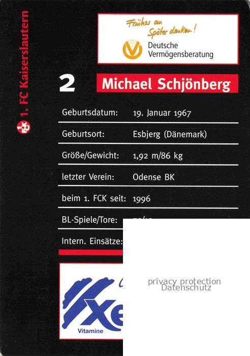 74051839 Fussball Soccer Football– Michael Schjoenberg FC Kaiserslautern postalisch nicht gelaufen Erhaltung siehe scans [IrynaD87] KatCode: 22520000002900