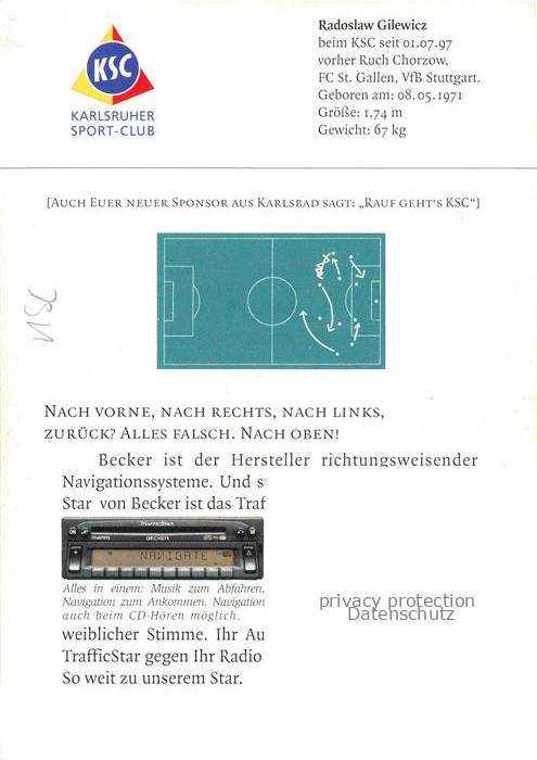 74051873 Fussball Soccer Football– Radoslaw Gilewicz KSC postalisch nicht gelaufen Erhaltung siehe scans [IrynaD87] KatCode: 22520000002900