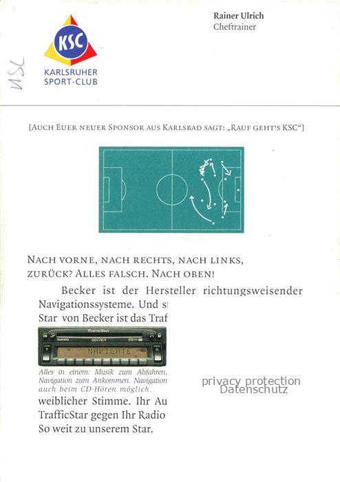 74051880 Fussball Soccer Football– Rainer Ulrich KSC postalisch nicht gelaufen Erhaltung siehe scans [IrynaD87] KatCode: 22520000002900