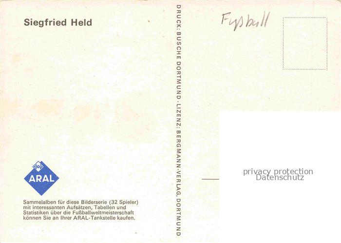 74052064 Fussball Soccer Football– Siegfried Held postalisch nicht gelaufen Erhaltung siehe scans [IrynaD87] KatCode: 22520000002900