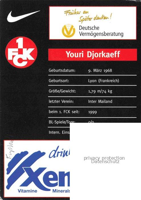 74052059 Fussball Soccer Football– Youri Djorkaeff FC Kaiserslautern postalisch nicht gelaufen Erhaltung siehe scans [IrynaD87] KatCode: 22520000002900
