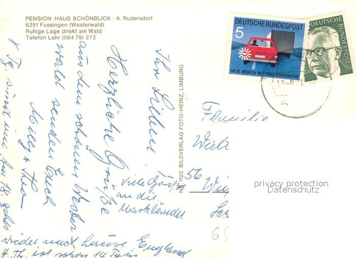 73673497 alte Postkarte Fussingen Pension Haus Schoenblick postalisch gelaufen Erhaltung siehe scans [FriedD77] KatCode: 11110006533016