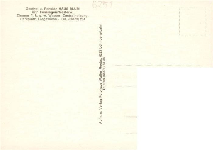 73890570 Fussingen Waldbrunn Westerwald Gasthof Pension Haus Blum Gastraeume postalisch nicht gelaufen Erhaltung siehe scans [FriedD77] KatCode: 11110006533016