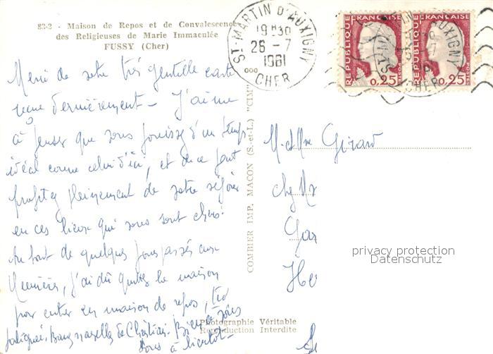 13504347 carte postale Fussy Fliegeraufnahme Maison de Repos postalisch gelaufen Erhaltung siehe scans [KathaD81] KatCode: 11170018118097