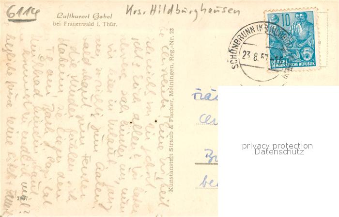 73750121 alte Postkarte Gabel Teilansicht Luftkurort Gasthof postalisch gelaufen Erhaltung siehe scans [FriedD77] KatCode: 11110016070015