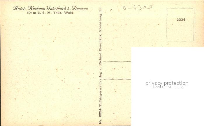 71874160 Gabelbach Thueringen Hotel Kurhaus postalisch nicht gelaufen Erhaltung siehe scans KatCode: 11110016070032