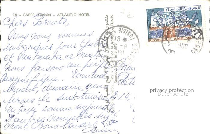 alte Postkarte Gabes Atlantic Hotel Pferdekutschen postalisch gelaufen Erhaltung siehe scans