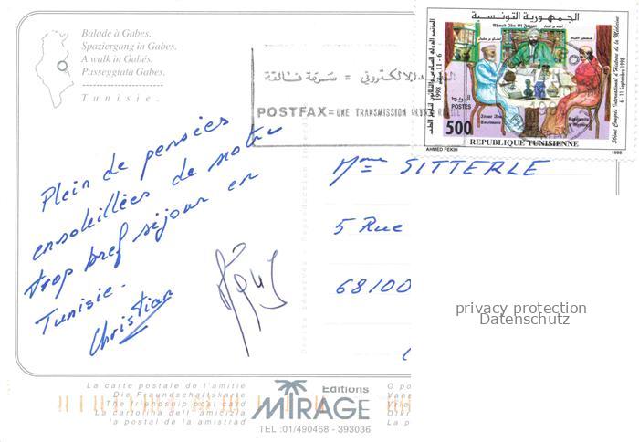 74026410 old postcard Gabes Tunesie Spaziergang in Gabes postalisch gelaufen Erhaltung siehe scans [FriedD77] KatCode: 18520