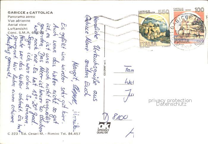 old postcard Gabicce Mare Fliegeraufnahme e Cattolica postalisch gelaufen Erhaltung siehe scans