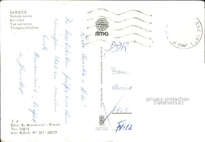 old postcard Gabicce Mare Fliegeraufnahme mit Strand postalisch gelaufen Erhaltung siehe scans