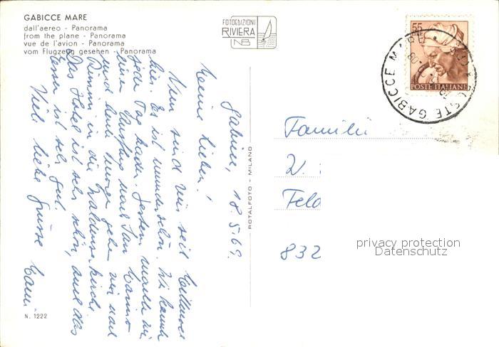 old postcard Gabicce Mare Fliegeraufnahme Strand postalisch gelaufen Erhaltung siehe scans