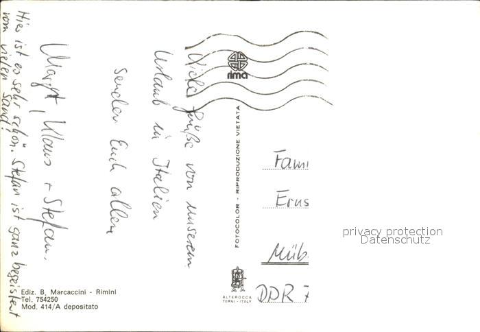 old postcard Gabicce Mare Fliegeraufnahme Strandpromenade postalisch gelaufen Erhaltung siehe scans