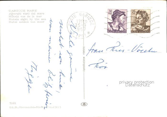 old postcard Gabicce Mare Hotel Strand Segelboot postalisch gelaufen Erhaltung siehe scans