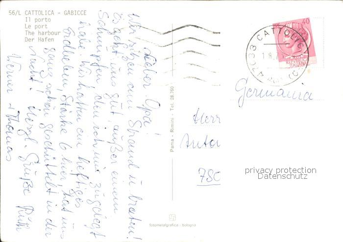old postcard Gabicce Mare il porto der Hafen Segelboote postalisch gelaufen Erhaltung siehe scans