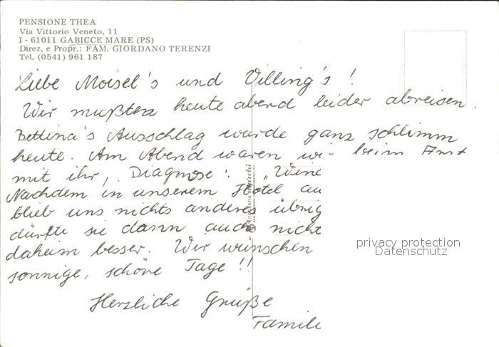 Gabicce Mare Pensione Thea postalisch nicht gelaufen Erhaltung siehe scans