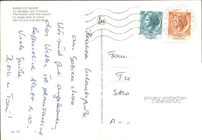 old postcard Gabicce Mare Spiaggia con il monte Strand Berg postalisch gelaufen Erhaltung siehe scans