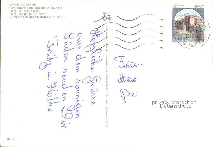 old postcard Gabicce Mare Spiaggia Strand Hotel Kueste postalisch gelaufen Erhaltung siehe scans