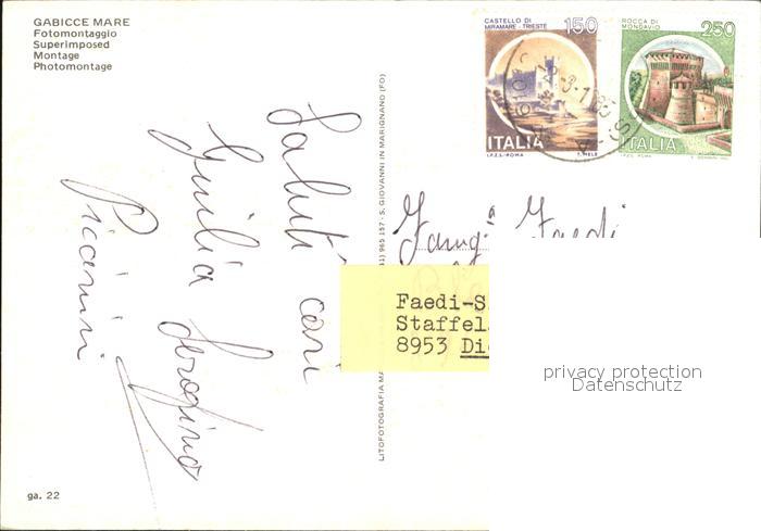 old postcard Gabicce Mare Strand Boot postalisch gelaufen Erhaltung siehe scans