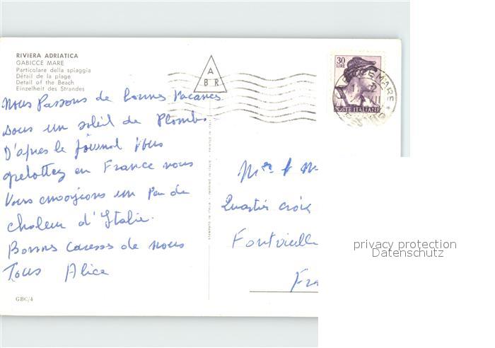 old postcard Gabicce Mare Strand Segelboot postalisch gelaufen Erhaltung siehe scans
