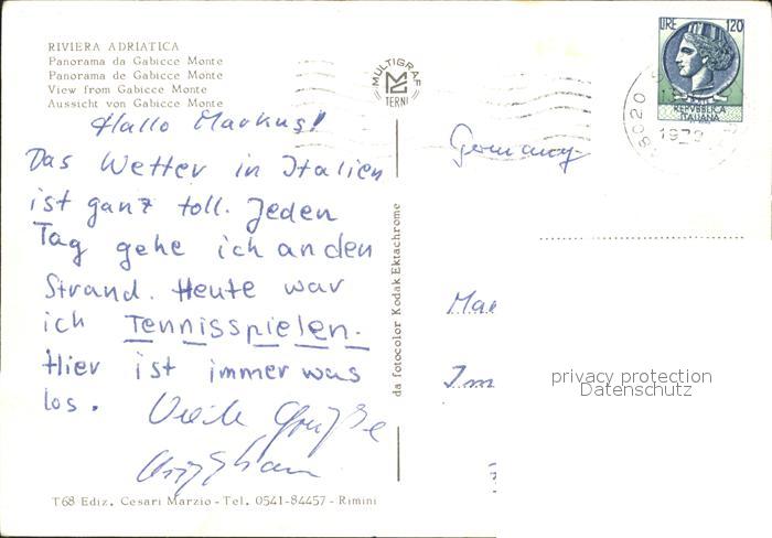 old postcard Gabicce Monte Panorama Notturno Riviera Adriatica postalisch gelaufen Erhaltung siehe scans