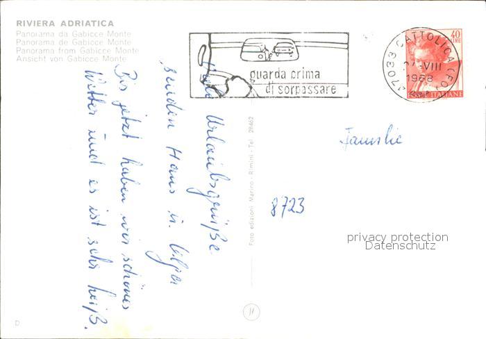 old postcard Gabicce Monte Panorama Riviera Adriatica postalisch gelaufen Erhaltung siehe scans