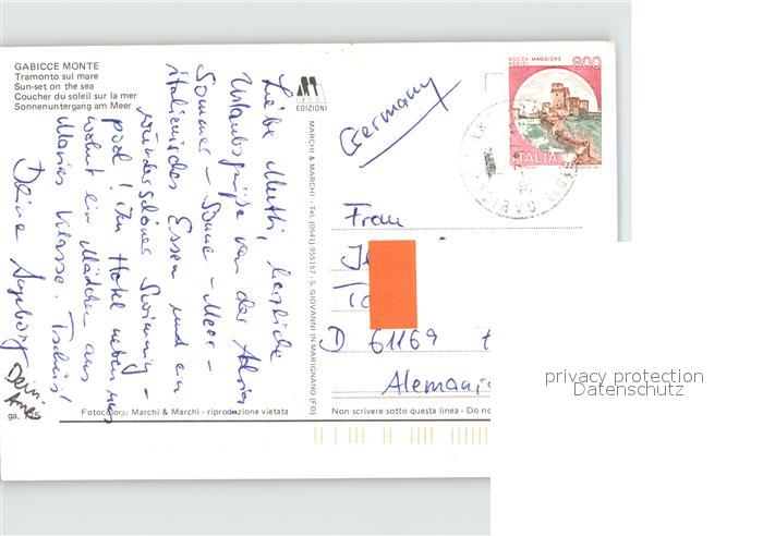 old postcard Gabicce Monte Sonnenuntergang postalisch gelaufen Erhaltung siehe scans