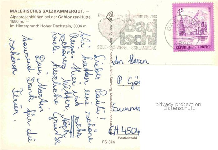 72802813 alte Postkarte Gablonzerhaus Berghuette Alpenrosenbluehen Hoher Dachstein postalisch gelaufen Erhaltung siehe scans [FriedD77] KatCode: 11390315040706