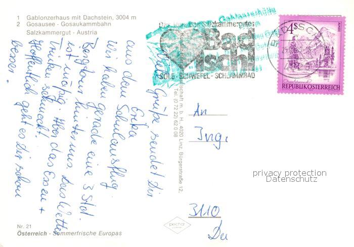 72929646 alte Postkarte Gablonzerhaus Dachstein Gosausee Gosaukammbahn postalisch gelaufen Erhaltung siehe scans [KathaD81] KatCode: 11390315040706