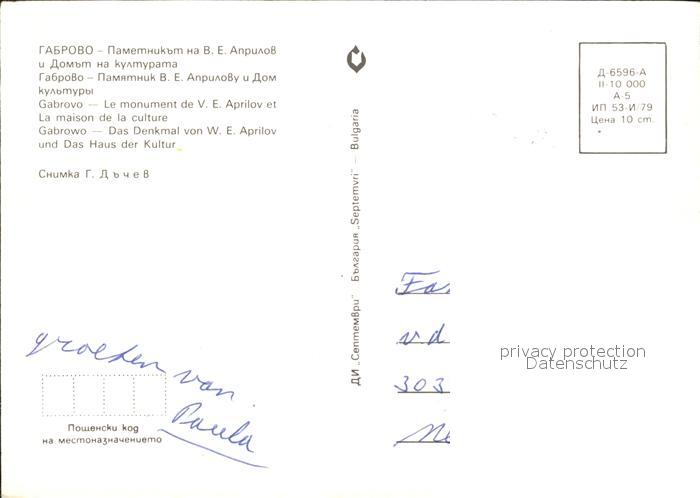 Gabrovo Denkmal W.E. Aprilov Haus der Kultur postalisch nicht gelaufen Erhaltung siehe scans