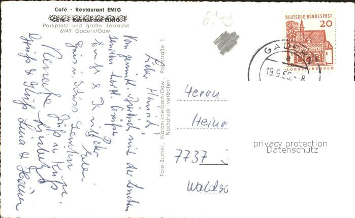 72094006 alte Postkarte Gadern Cafe-Restaurant Emig postalisch gelaufen KatCode: 11110006431021
