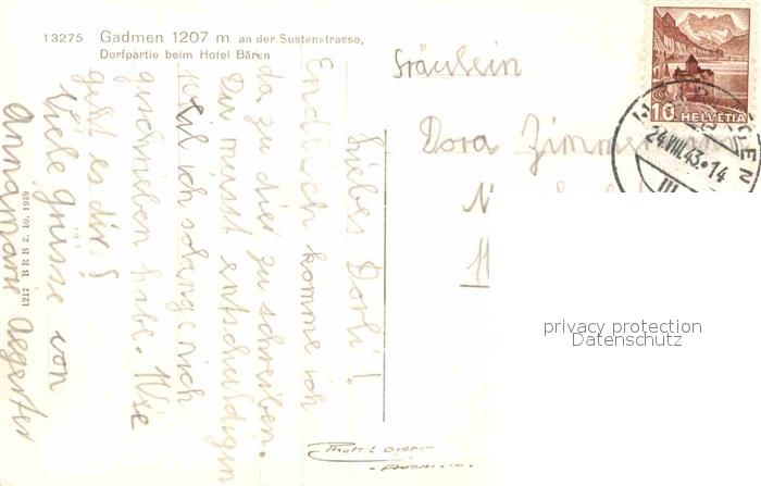 12736840 alte Postkarte Gadmen Dorfpartie beim Hotel Baeren postalisch gelaufen Erhaltung siehe scans [AndreD76] KatCode: 11470060210572