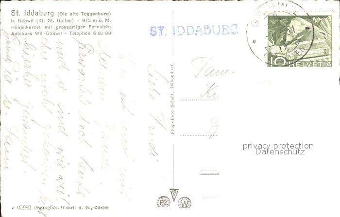 12029822 alte Postkarte Gaehwil St Iddaburg Alte Toggenburg Fliegeraufnahme postalisch gelaufen Erhaltung siehe scans KatCode: 11470190585788