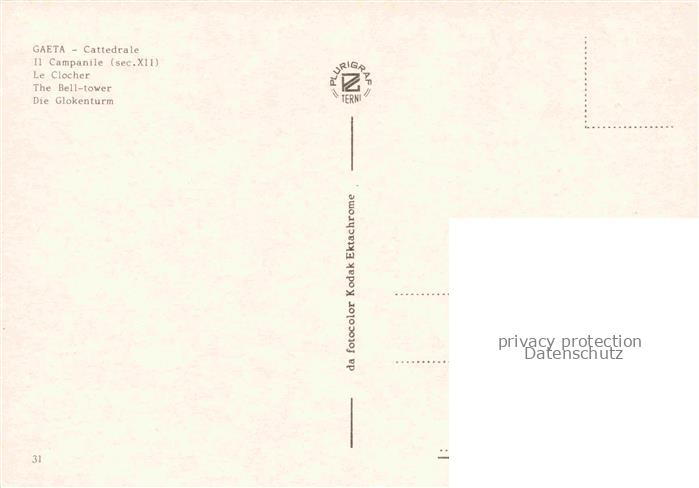 74079525 Gaeta Campania IT Cattedrale Campanile sec. XII Glockenturm postalisch nicht gelaufen Erhaltung siehe scans [FriedD77] KatCode: 11240