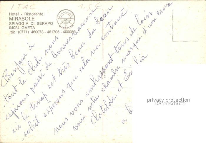Gaeta Hotel Restaurant Mirasole postalisch nicht gelaufen Erhaltung siehe scans