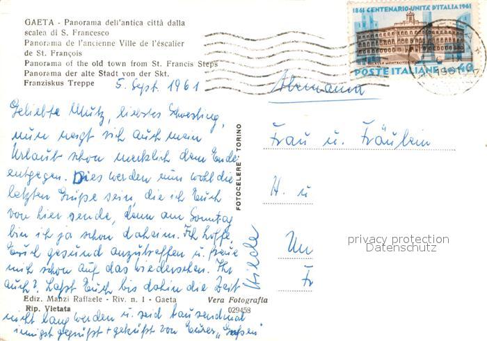 old postcard Gaeta Panorama dell antica citta dalla scalea di San Francesco postalisch gelaufen Erhaltung siehe scans [WerneD78]