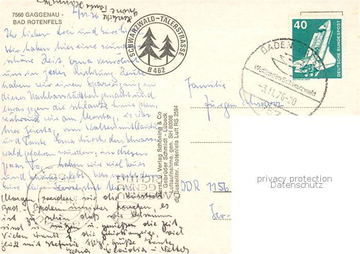 73116074 alte Postkarte Gaggenau Bad Rotenfels Fliegeraufnahme postalisch gelaufen Erhaltung siehe scans [KathaD81] KatCode: 11110008216015