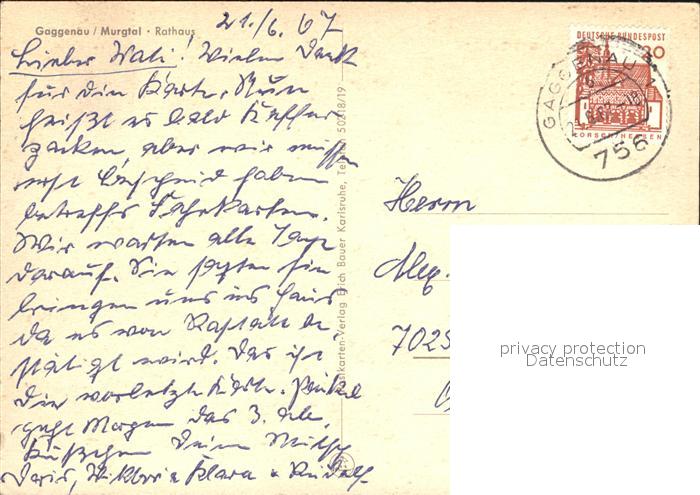 72497535 alte Postkarte Gaggenau Rathaus postalisch gelaufen Erhaltung siehe scans KatCode: 11110008216015