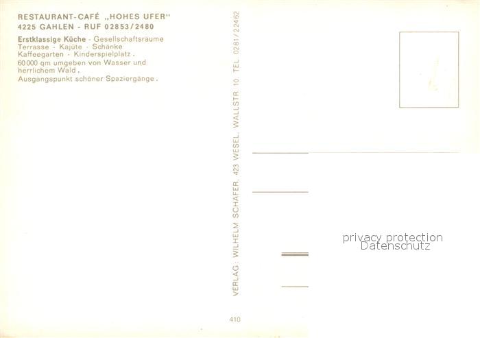 73735533 Gahlen Restaurant Cafe Hohes Ufer Gastraeume Lageplan postalisch nicht gelaufen Erhaltung siehe scans [WerneD78] KatCode: 11110005170036