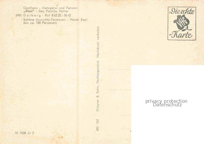 74048538 Gaiberg Baden Heidelberg BW Gasthaus Gaul Terrasse Gastraum postalisch nicht gelaufen Erhaltung siehe scans [WerneD78] KatCode: 11110008226022