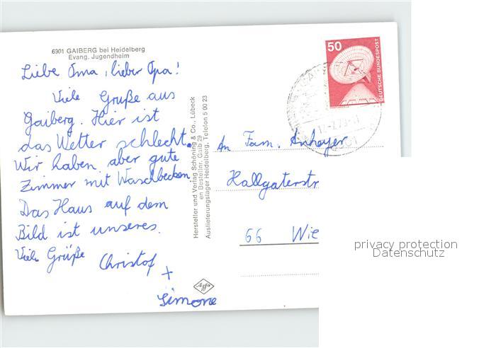 72143852 alte Postkarte Gaiberg Baden Jugendheim postalisch gelaufen Erhaltung siehe scans KatCode: 11110008226022