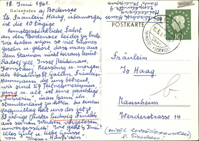 41043687 Gaienhofen Bodensee BW Bodensee postalisch gelaufen Alte Ansichtskarte Postkarte alte Postkarte Stef Katcode 11110008335025
