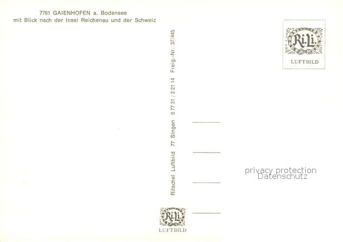 73624982 Gaienhofen Bodensee Fliegeraufnahme mit Insel Reichenau postalisch nicht gelaufen Erhaltung siehe scans [WerneD78] KatCode: 11110008335025