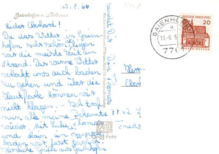 73886918 Gaienhofen Bodensee Fliegeraufnahme postalisch gelaufen Erhaltung siehe scans [WerneD78] alte Postkarte Wern Katcode 11110008335025