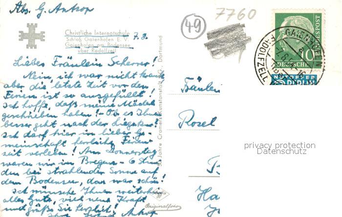 73140468 alte Postkarte Gaienhofen Christliche Internatschule Schloss Gaienhofen Fliegeraufnahme postalisch gelaufen Erhaltung siehe scans [FriedD77] KatCode: 11110008335025