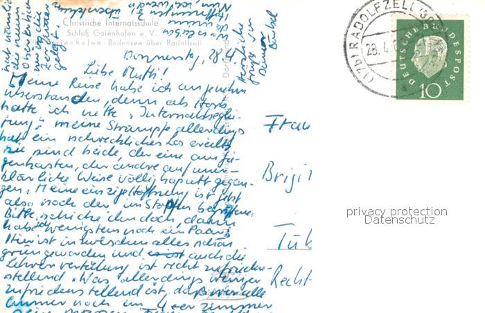 73648521 alte Postkarte Gaienhofen Christliche Internatsschule Schloss Gaienhofen e.V. postalisch gelaufen Erhaltung siehe scans [FriedD77] KatCode: 11110008335025